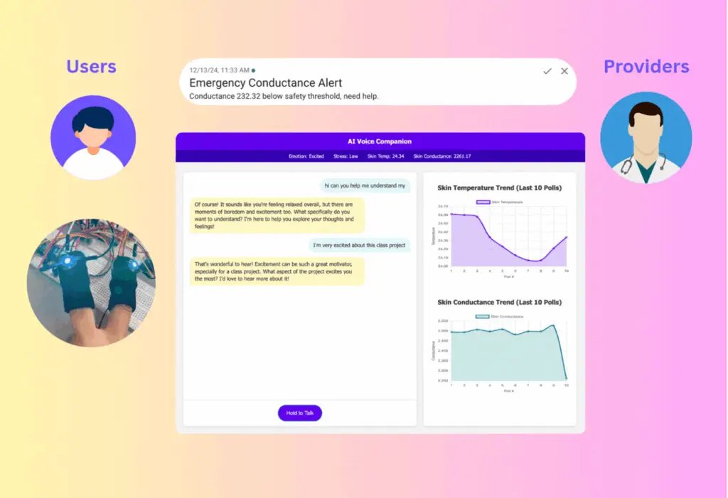 Smart glove enabling real-time affective-aware connection between patients and clinicians via multimodal sensor data.
